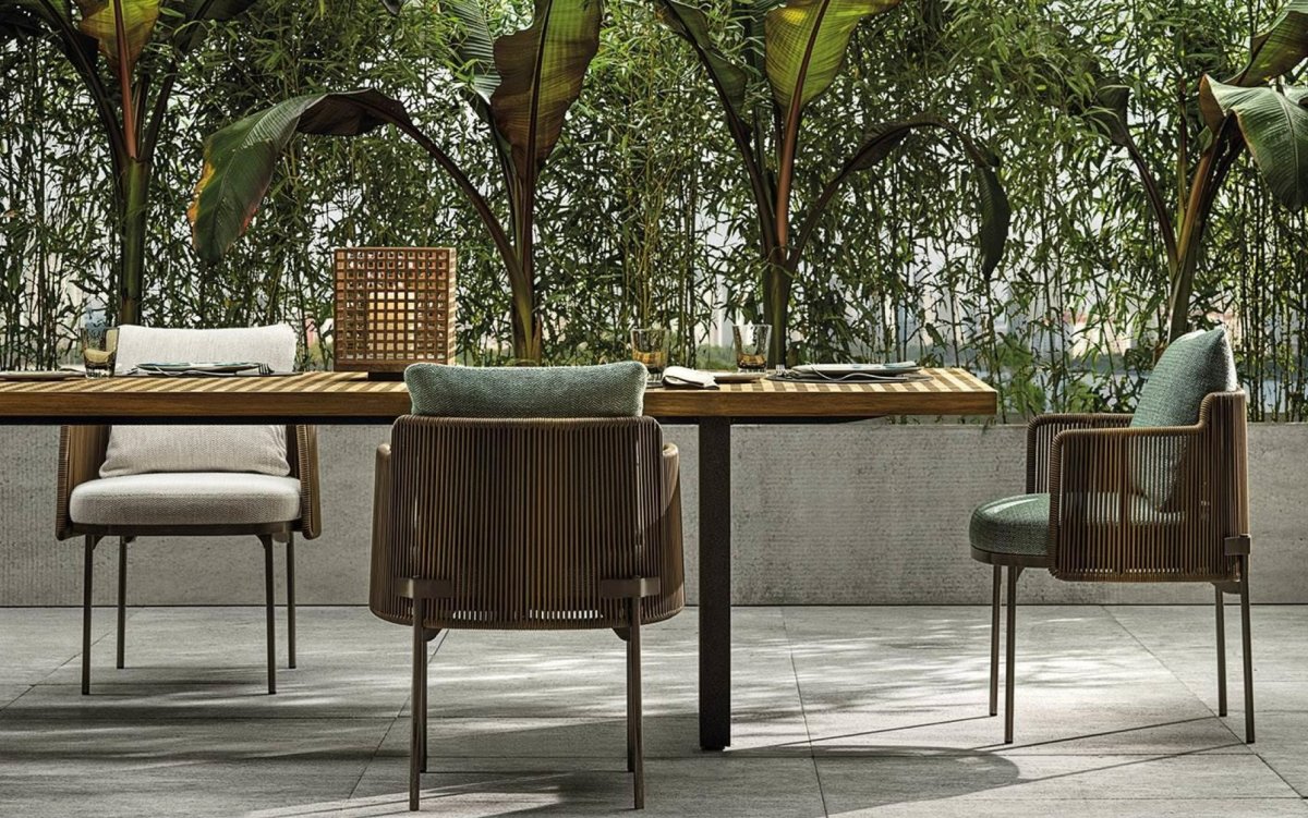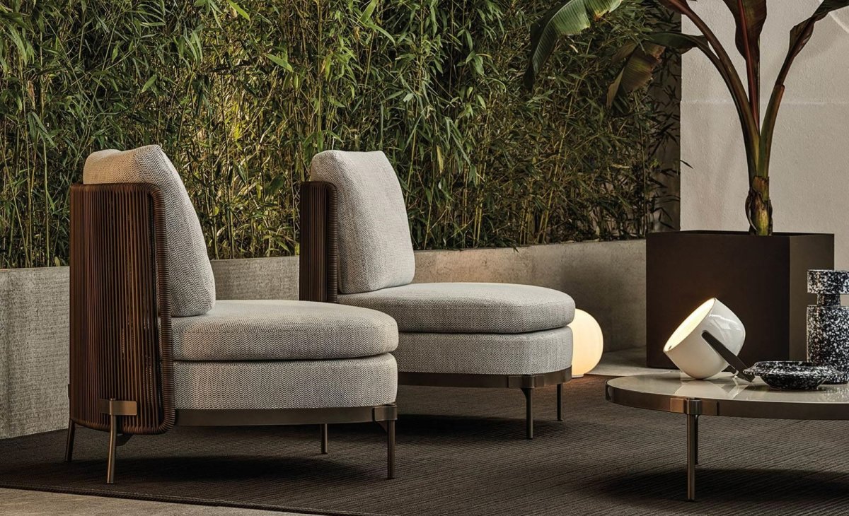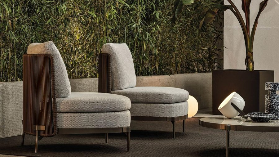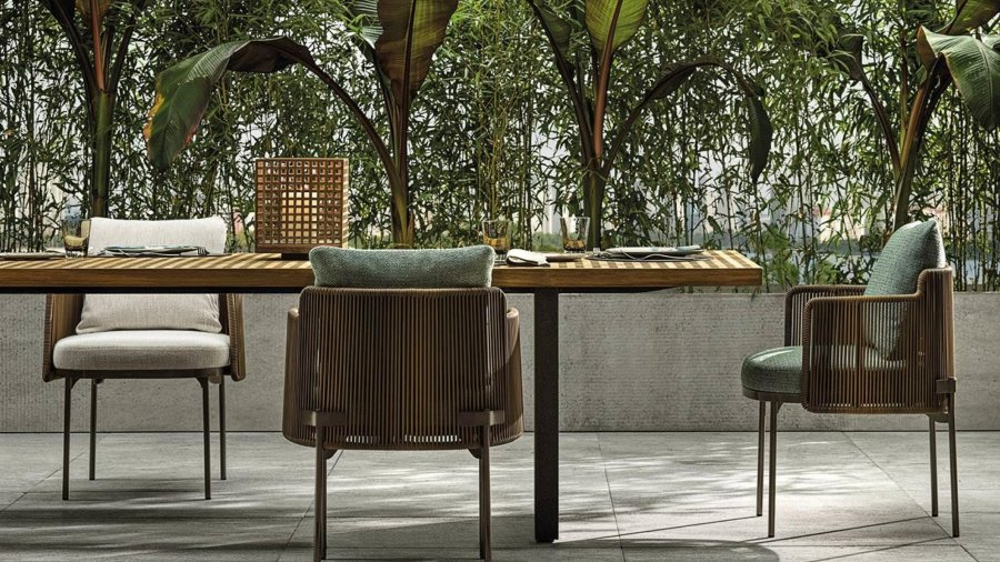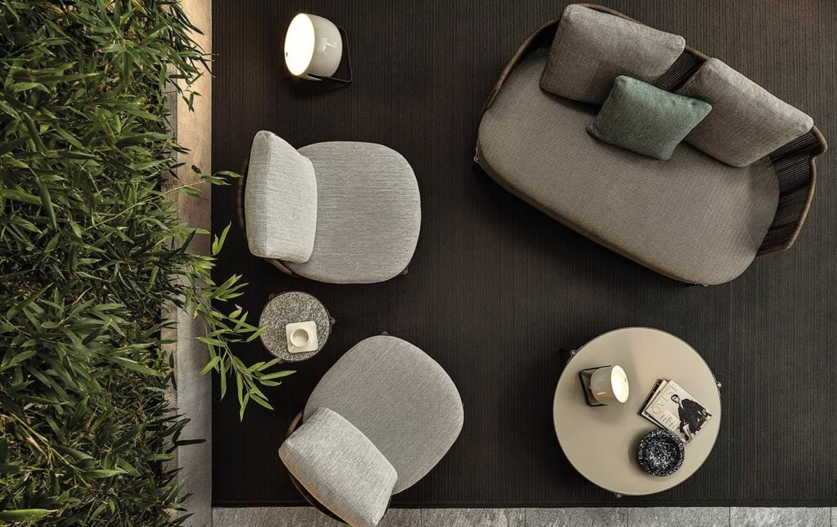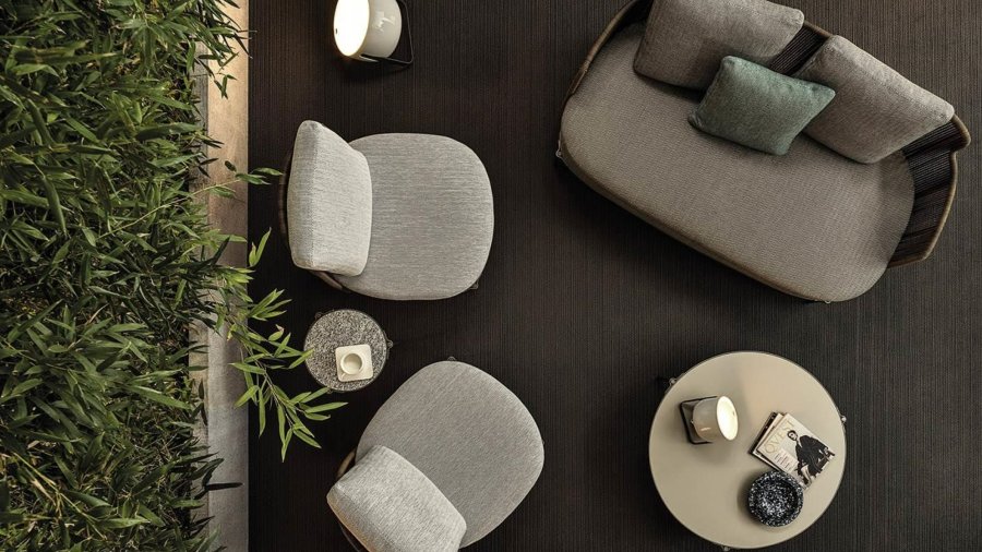 Das System bietet viele Elemente, die sich ideal für die Schaffung von Entspannungszonen auch in kleinen Außenbereichen oder auf urbanen Dachterrassen eignen: vom Sessel bis zum Sofa, von der Chaiselongue Paolina bis zur originellen, nach hinten offenen Couch, vom Sessel bis zu den Couchtischen, bis hin zum Hocker in zwei Höhen.
